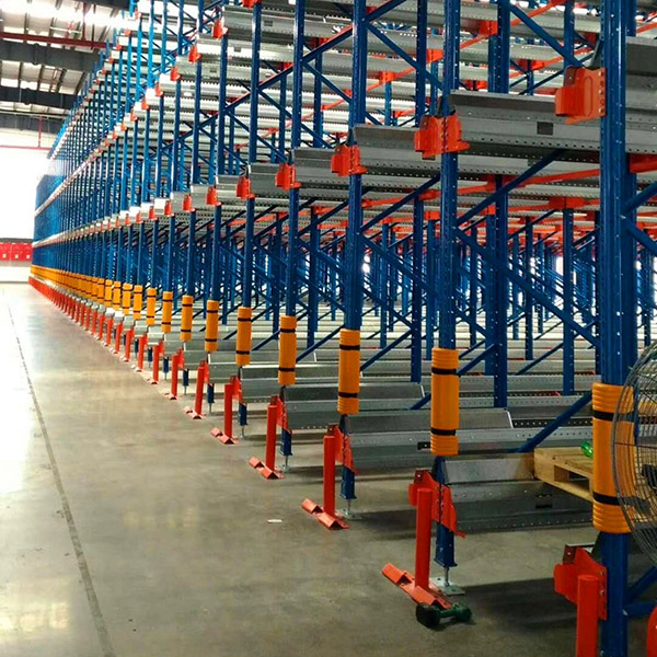 简介——穿梭车货架系统是由货架、穿梭车以及叉车组成的高密度存储系统,可以提高仓库空间的利用率,穿梭车货架系统是指在货架特定的导轨上运行的前后穿梭的小车即穿梭车,车体或台面可上升或下降,提升与下降托盘货物,将托盘货物依次归位的一种系统。小车由无线电遥控,车载电池提供续航能力,主要依靠四个轮子前后行走。